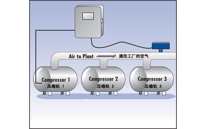 在工厂环境中,往往有一个控制器用于监测设备的压缩空气使用。控制器在特定时间自动根据设备负荷确定需要启动的压缩机最佳数量。仅仅启动必要数量的设备,可以节约大量的能耗。而需求量是由工厂中消耗的空气总质量流量决定的,而FCI的ST98系列质量流量计在设计上特别适合这种要求。控制器可以根据ST98指示的质量流量来设定压缩机的使用。