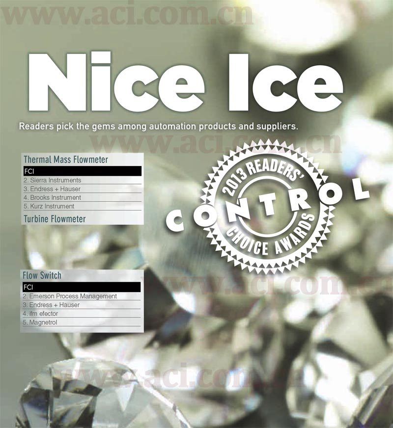 San Marcos, CA—2013年2月27日—Fluid Components International (FCI) 公司荣幸地宣布,FCI公司继续蝉联Control杂志用户评选的热式质量流量计和流量开关供应商两项冠军。第21届Control杂志年度用户评选大奖的结果代表了上千名自动化专业人士的集体意见。