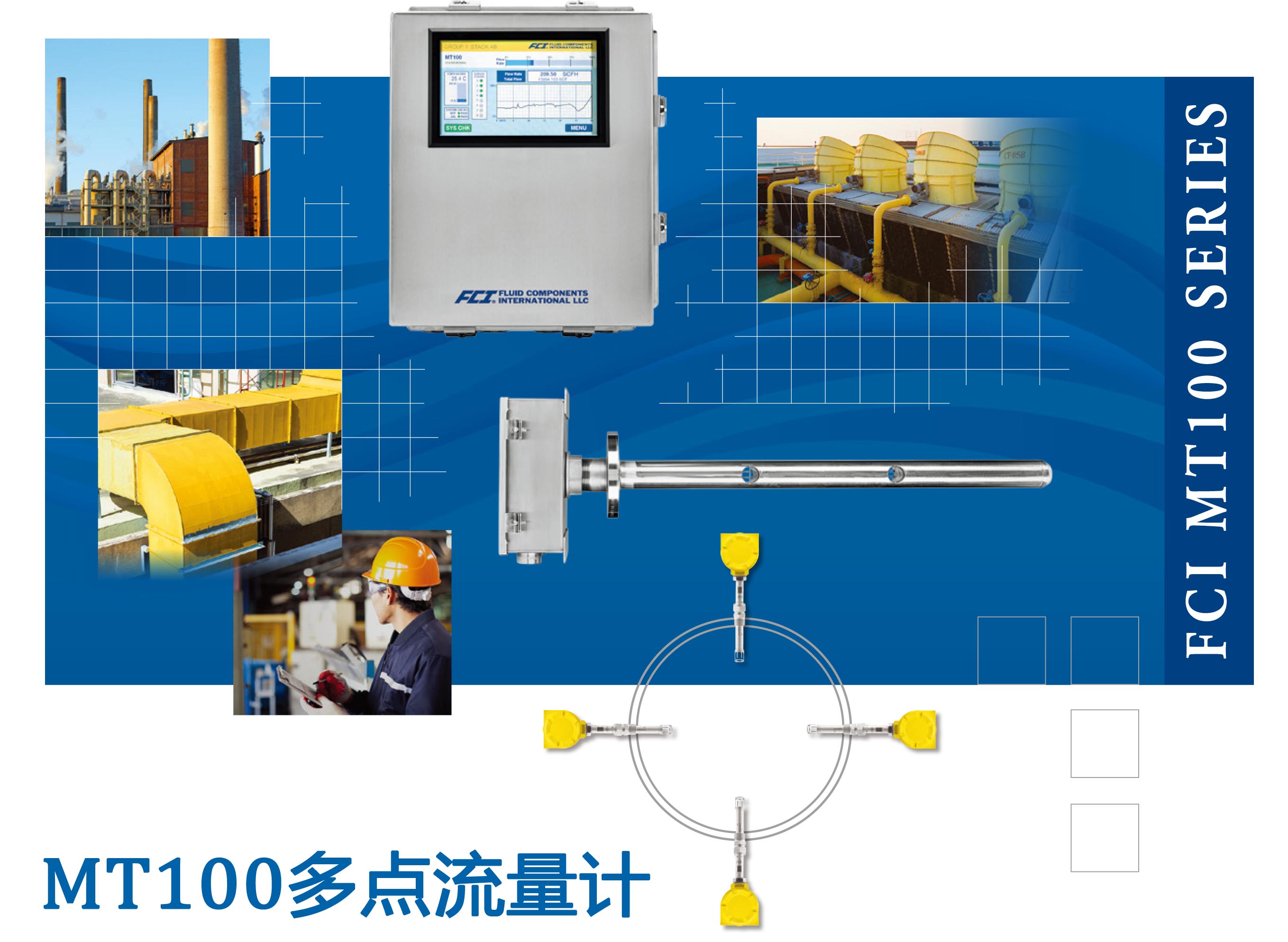 为了拓展在空气和气体大管道流量测量应用中的适应性,FCI日前发布了一款全新的多点热式质量流量计MT100系列。作为代表当今多点流量计最先进水平的MT100,与已有ST102A一道成为目前全球热式流量计领域无与伦比的多点测量解决方案!
