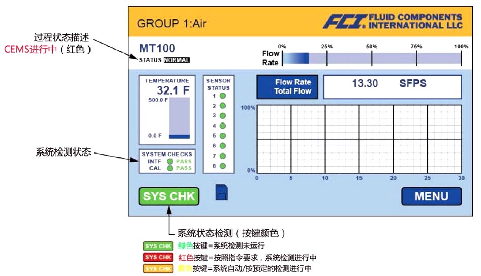MT100 还可提供一个可选的连续排放监控系统(CEMS)组件,并满足美国环境保护署(EPA)的 CEMS和连续排放等级监控系统(CERMS)应用要求。MT100的CEMS选项包括 自动或按需要实现自校准标定偏差(CD)和传感器偏差。CEMS 的测试结果将以“通过”或“不通过”信息传递给操作员并由LCD读出。CEMS选项还包括用于连接到外部设备的两路继电器输出,一路代表信号测试中,另一路为信号故障测试模式等。