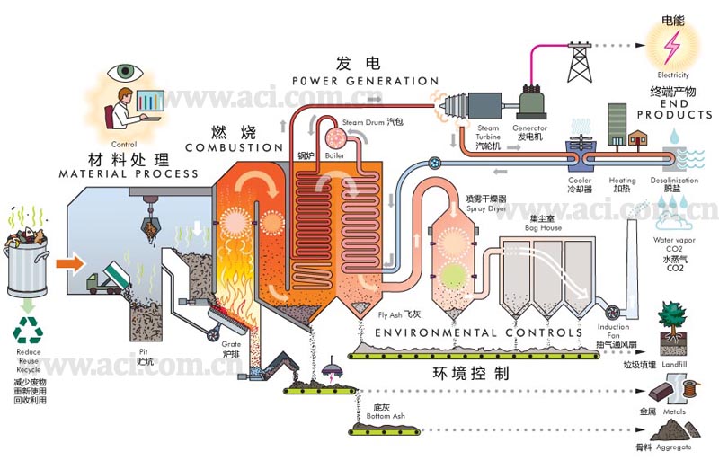 国内的垃圾电厂大多使用炉排型焚烧炉,在垃圾电厂的运行过程中,垃圾将在焚烧炉排上完成干燥、加热、分解、燃烧、燃烬等几个反应过程。废料/燃料随着炉排的移动从进料区移动到燃烧区,然后当其移动到炉排末端的时候,应该已经完全燃烧(所有能量都已释放),并成为了灰烬状态。如果在炉的底部排放出去时还在燃烧,则其中能量并未全部释放,意味着整体效率降低了。而如果废料在炉中停留时间过长,炉底的灰量过多,则燃烧效率也会降低。